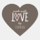 Perfektes Aufkleber-Label für Hersteller, Unternehmen oder Einzelpersonen, die handgefertigte Waren und Produkte herstellen. Design-Features "Made With Liebe By" in einem stilvollen, handgeschriebenen Text-Pairing. Personalisieren Sie mit Ihrem Namen. Hinweis: Anzug können Sie Ihre Designvorlieben und Ihr Markenimage ändern. Kunstwerk von Moodthologie.