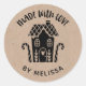 Ein personalisierter Aufkleber "made with Liebe" mit einem niedlichen kleinen Lebkuchenhaus mit Herz und Worten, mit Liebe auf kraftfarbenem Hintergrund. Personalisieren Sie es, indem Sie Ihren eigenen Namen hinzufügen. Eine hübsche Touch für all Ihre hausgemachten Geschenke. Entworfen für Sie von BlackBerry Boulevard.