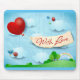 Herzförmiger Ballon und Botschaft über die Landschaft, digitale Kunst