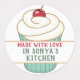 Adorable Kirsche bedeckt Kuchen mit weißem gepeitschten Zuckerguss in hellblau und weiß für Business, Geburtstage, Geschenke oder nach Ihren Wünschen, Personalisiert für viele Verwendungen und Anlässe. Entwürfe für runde und quadratische Etiketten oder zur Anpassung an die Rechteckform.