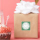 Personalisieren Sie Ihre Daten mit Ihrem Namen oder Firmennamen. Der bearbeitbare Text lautet "Made with Liebe". Ideal für hausgemachte Backwaren oder die Verpackung Ihrer Bäckerei. Herz mit doppelter runder Grenze und grünem Hintergrund.