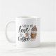Ein niedliches und lustiges Kaffeedesign, ideal für Kaffeeliebhaber. Die Tasse ist und gemütlich. Design zeigt unsere handgezeichnet Kawaii-Stil Latte-Kaffee-to-Go-Tasse-Illustration. Whimsical latte Tasse kawaii Charakter mit wirbelnden und heiß die Latte Schaum schaffen. Ein süßes kleines Lächeln und Hände schaffen eine Herzform. "Von Liebe & Kaffee gespeist" in Handschrift, fügt einen lustigen und künstlerischen Look hinzu. Personalisieren Sie das Kaffeekragen mit einem Namen. Die Rückseite der Tasse zeichnet sich durch unser niedliches kleines Herzdesign mit einem wiederholten Namen aus. Alle Illustrationen sind handgezeichnet Originalwerke von Moodthology.