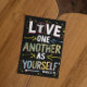 Mit den Worten Liebe einander wie sich selbst in kühnen, farbenfrohen Briefen, und betonen die Wichtigkeit der Verbreitung von Liebe und Mitgefühl.