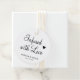 Moderne typografische Gastgeschenk Hochzeit Tags mit der Meldung "Mit Liebe infiziert" in schwarzen Skript, ein Herz und Ihre Namen und Datum unten, über einen weißen Hintergrund. Die Rückseite ist schwarz, und die Schriftart und Hintergrundfarben können beliebig verändert werden. Diese minimalen und einfachen Tags sind ideal für das minimalistische Paar und fügen eine persönliche Touch zu Ihren Favoriten hinzu.
