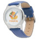 Kinderuhr aus Edelstahl mit blauem Lederarmband