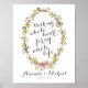 Dieses hübsche, blumengeschmückte Kranz-Design ist eine schöne Ergänzung zu Ihrer Hochzeit oder als Geschenk für das frisch verheiratete Paar. Es ist mit den Namen der Braut und des Bräutigams und dem Hochzeitsdatum personalisiert.