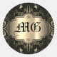 Mit Monogramm Abstrakte Blütenschwarz und Gold Runder Aufkleber