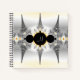Dieses schöne Notizbuch bietet abstrakte Fraktal-Kunst in Silber mit Goldakzenten und hellgrauem Monogramm.