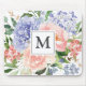 Vorstellung unseres Mit Monogramm ersten Watercolor Blue Pink Blumenmousepads. Mit Aquarellbild von blühenden Hydrangea, Peony und Rose, gefangen in Pastelltönen. Personalisieren Sie es mit Ihrem Monogramm für diese besondere Touch!