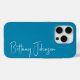 Dieses mit Monogramm aquamarine iPhone 15 Pro Gehäuse ist trendig und klassisch. Es zeigt Ihren Namen in einem fabelhaften, modernen Script-Schriftart in Weiß. Es ist einfach und minimalistisch, stilvoll und elegant.