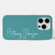 Dieses mit Monogramm aquamarine iPhone 15 Pro Gehäuse ist trendig und klassisch. Es zeigt Ihren Namen in einem fabelhaften, modernen Script-Schriftart in Weiß. Es ist einfach und minimalistisch, stilvoll und elegant.