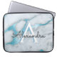 Blau Aquamarin und weiß Marmor Modernes und elegantes Monogram Laptop Gehäuse. Dieser Fall kann so angepasst werden, dass er Ihren Anfangs- und Vornamen enthält. Wenn Sie passende Artikel wünschen, wenden Sie sich bitte an den Designer.