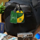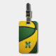 Dieses sportliche Basketball-Gepäckanhänger, geeignet für ein Mädchen oder einen Jungen, verfügt über einen abstrakt übergroßen Basketball mit abwechselnd grün- und goldfarbenen Panels, auf dem Sie sich mit dem Namen und dem Monogramm des Athleten auf der Vorderseite personalisieren können - die Adresse und Telefonnummer auf der Rückseite anpassen - von katz_d_zynes