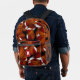 Dieser coole Basketball-Rucksack weist ein zufälliges Muster von Basketballbällen unterschiedlicher Größe auf, die auf schwarzem Hintergrund gedreht wurden. Jede der Basketbälle im Muster hat zwei farbige Panels - eine rote und eine weiße - die mit dem Monogramm des Athleten abgestimmt sind - von katz_d_zynes