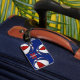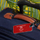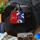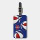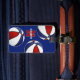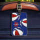 Dieses Basketball-Gepäcksack-Anhänger wurde einfach mit drei zufällig angeordneten Basketballbällen entworfen, die abwechselnd rote, weiße und blaue Paneele auf einem individuell anpassbaren blauen Hintergrund haben - mit Spielername und Monogramm auf der Vorderseite, Adressinformationen auf der Rückseite - von katz_d_zynes