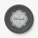 Mit diesen trendigen Tellern aus Quarrefolienmuster in Schwarz und Weiß mit einem gerahmten Monogramm verleihen Sie Ihrem Party eine elegante, moderne Atmosphäre. Personalisieren Sie dieses stilvolle Design, indem Sie Ihren Namen und mit Monogramm Initialen hinzufügen.