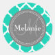 Cooles niedliches schicke, aquamarin-blau, grau und weiß marokkanisches Gitterquartfolienmuster mit grauem Typenschild für Ihren individuellen Anfangsbuchstaben und Namen in Monogramm. Großartiges Geschenk für Mädchen, die geometrische Muster und mit Monogramm Geschenke Liebe.