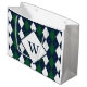 Personalisieren Sie das Monogramm auf diesen hochwertigen Geschenktüten mit blauer und grüner Raute. Ideal zum Vatertag, Geburtstag oder Abschluss!