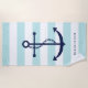 Mit Monogramm blauer Anker auf hellblauen Streifen Strandtuch