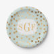 mit Monogramm Blauer Minze Blau und Gold Glitzer P Pappteller