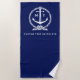 Themed nautischbadetuch personalisiert mit einem Monogramm der Einzelperson oder des Paares. Ausrüstungsbeschreibungen ein Seeanker umkreist durch ein Seil und ein Set gegen einen Marineblauhintergrund (ändern Sie leicht die Farbe). Fügen Sie eine Linie des kundenspezifischen Textes unten hinzu oder löschen Sie. Vervollkommnen Sie für das Segeln und die Bootfahrtenthusiasten oder -jedermann, das Zeit auf dem Wasser verbringen mag. Macht eine wunderbare Hochzeit, einen Geburtstag oder ein WeihnachtsFeriengeschenk.