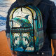 Mit Monogramm blaues Aquamarines Dolphin-Bleiglas- Bedruckter Rucksack