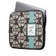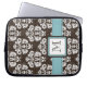 Dieser blaue und braune Damastlaptop der hübschen und eleganten kundenspezifischen mit Monogramm Eierschale, Tablette und/oder Elektronikhülse, Kasten, Abdeckung und Tasche können mit Ihrem Monogramm oder Initiale auf dem Kontraststich-Bandentwurf personalisiert sein. Wählen Sie von 3 verschiedenen Größen. Entworfen durch Chrissy H. Studios, LLC. Alle Rechte vorbehalten.