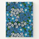 Retro Blumenheft mit Blume und Grünpflanzen in Blau, Weiß und Grün. Fügen Sie Ihren Anfangsnamen und den Verwendungszweck des Notebooks blau zu einem blassgrünen Etikett hinzu. Ein Wendelheft mit einem Retro-Blumenmuster mit handgezeichnet Blume in Blau und Weiß.