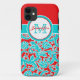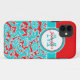 Dieser modernes, personalisiertes, Türkisblau, Rot und weiße Blumendamastmuster Case-Mate kaum There™ iPhone 5 Kasten hat die Stellen, damit Sie Ihren Namen, Initialen, Monogramm oder anderen Text addieren. Wenn Sie die Hilfe benötigen, die dieses besonders anfertigt, emailen Sie bitte niteowlstudio@gmail.com.