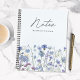 Erleben Sie Ihre Ideen in der Schönheit unseres Mit Monogramm Blue Watercolor Wildblume Meadow Notebook. Modern, elegant und mit lebhaften Blumen dekoriert.