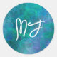 Mit Monogramm Blue Bokeh Abstrakte digitale Kunst Runder Aufkleber