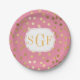 mit Monogramm Candy Pink und Gold Glitzer City Dot Pappteller
