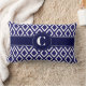 Navy blaues Lumbalkissen mit einem Diamantmuster-Design. Sie können Ihre Initialen in die Mitte des Monogrammlogos einfügen, indem Sie die benutzerdefinierte Vorlage verwenden. Zwei weitere Größen sind verfügbar.