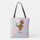 Niedlicher, farbenfroher Baby Dinosaurier über abstraktem verschwommenem Hologramm. Optionales Monogramm