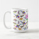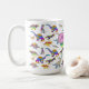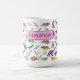 Ein wunderschönes, farbenfrohes Dinosaurier-Muster aus der Jurassik-Ära prähistorische Dinosaurier in lustigen Aquarellfarben in kräftigen Farben. Mit beängstigendem T. rex oder Tyrannosaurus Rex, Velociraptor, Stegosaurus, Pterodactyl, Triceratops, Brachiosaurus und Brontosaurus. Mädchen werden diese Dino-Tasse mit rosa Namensvorlage Liebe, verwenden Sie einfach die Vorlage, um einen Namen anstelle von Alexander zu schaffen, ein einzigartiges personalisiertes Geschenk. Ein lustiges, funky Design für Dinoliebhaber und Paläontologen. Original-Illustration der Künstlerin Catherine Sweetman
