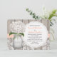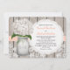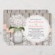 Maurerglas HOCHZEITS-Einladungen der hübschen rustikalen Art schnüren sich mit Monogramm mit weißen Hydrangea-Blumen und ein hölzernes Zaun- und Antikendamastmuster Hintergrund und genähter korallenroter Bandblick des blassen Pfirsichlichtes entwerfen. Diese lädt können mit den Initialen und dem Monogramm der Braut und des Bräutigams auf dem Maurerglas personalisiert sein ein. Diese lädt sind perfekt für ein Land, ein Bauernhaus, ein Garten-Party oder eine Barnyardarthochzeit ein. Entworfen durch Chrissy H. Studios, LLC. Alle Rechte vorbehalten.