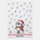 Kreieren Sie ein personalisiertes Weihnachtshandtuch mit einem festlichen, modernen Design, das einen niedlichen Eis-Skaten-Pinguin auf weißem Hintergrund mit Schneeflocken und Ziergegenständen bietet. Mit der Vorlage geben Sie Ihren Namen oder ein Sprichwort für die einzigartige Küchendekoration für die Ferienzeit ein.