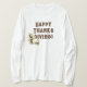 Das Design-Front-Sprichwort "Happy Thanksgiving!" in einem großen, kühlen Schriftart. Das Bild der sepia Rose betont die untere Ecke. Umkehren zeigt den Anfang, den Sie liefern, in der oberen Mitte in einem großen, eleganten Schriftart angezeigt. Der Familienname wird in der Anfangsphase angezeigt. Eine Nachricht, die Gott Dank und Lob bietet, wird unten in einem eleganten braunen Schriftart angezeigt. Der gesamte Text ist anpassbar.