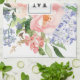 Genießen Sie den Esstisch mit unserem Mit Monogramm Watercolor Blue Pink Spring Floral Küchentuch. Mit einer pastellfarbenen Palette von blauen Hydrangea, rosafarbenen Torfmotiven und Rose ist dies ein blühendes Stück, das mit der Frühlingssaison übereinstimmt.