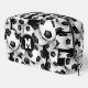 Dieses soccer-thematische Dopp-Kit enthält ein zufälliges Muster von unterschiedlich großen Fußballbällen, die auf einem schwarzen Hintergrund gedreht wurden - mit dem Mongramm des Fußballspielers - von katz_d_zynes