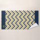 Monogram Badetuch Set mit einem trendigen Zickzack Muster in blau und gelb.