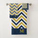 Mit Monogramm-Gelb-Blau-Zickzack Muster Badhandtuch Set