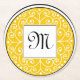 Mit Monogramm gelbes Schwarz-weißes Wirbels-Muster Runder Pappuntersetzer