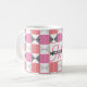 Wenn Retro-Vintager Klassiker moderne Kunst inspiriere, wird dieses geometrische Quadrat-Muster in Rosa und Schwarz durch Vintage Epoche und Chekerboard-Stil inspiriert, mit einer Touch abstrakter geometrischer Formen in ästhetischem Muster zu einem stilvollen und eleganten Dekorationsmuster, das aus geometrischen Quadraten und Linien in Rosa und Schwarz besteht, um ein schönes, elegantes und einzigartiges Muster zu schaffen. Diese Coffee Tasse kann leicht editierbar sein und erlaubt es Ihnen, die Monogramm-Initialen und den Namen mit einer rosa Stilkalligraphie und einer Vintagen Retro-Schriftart in einem geometrischen Quadrat zu verändern. Dieses Design ist für das beste Geburtstagsgeschenk und Feiertage Geschenk für Weihnachten und Feiertage Winterurlaub.