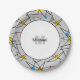 Mit Monogramm geometrisches Retro-Muster Pappteller