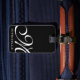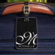 Gepäckanhänger mit Ledergurt: großes Skript-Monogramm und Name mit QR-Code