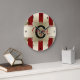 Schaffen Sie Ihren eigenen eleganten personalisierten mit Monogramm Zuhausedekor Chicgoldmetalleffekt und gestreiftes Muster des roten Glitters des Imitats mit einer Goldmetallblickfahne. Mit riesiger Monogramminitiale im Schwarzen mit Schatteneffekt und Familiennamen in den hübschen zusammenpassenden dunkelroten Skriptbuchstaben in der Mitte. Mit schwarzen Ziffernblattziffern. Bereiten Sie vor, um Sie jedoch besonders anzufertigen mögen für ein einzigartiges personalisiertes Geschenk addieren Datum, jeden kundenspezifischen Text, den Sie wünschen. Großes Hochzeitsgeschenk, für ein Brautparty oder Housewarminggeschenk.