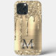 Eleganter, moderner, gürtelgoldener Glitzer Tropfen kundenspezifische personalisierte Namen und mit Monogramm iPhone Gehäuse. Dieses Design verfügt über glänzende Tropfen aus goldgelbem, gebürstetem Metall mit personalisiertem Monogramm-Initial- und Vorname-Textvorlage. Perfektes weibliches Geschenk für Mädchen und Frauen, die trendige Glamour-Dinge Lieben hübsch. Wenn Sie Hilfe oder passende Artikel benötigen, kontaktieren Sie mich bitte.