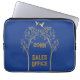Schützen Sie Ihr Notebook stilvoll mit unseren Mit Monogramm Gold Trees mit Birds auf Blue Laptop-Hülle. Dieser elegante und raffinierte Ärmel zeichnet sich durch ein elegantes Design von Goldbäumen und Vögeln vor einem schwarzen Hintergrund aus, personalisiert mit Ihrem Monogramm für eine einzigartige Touch.