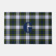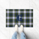 Klassische karierte Türmatte des blauen, grünen, gelben, Schwarzweiss-Scottish-Gordon-Kleidertartan.  Ein mutiges Buchstabemonogramm des Blaus eins, mitten in der Matte, ist bereit zu personifizieren.  Große Geschenkidee.